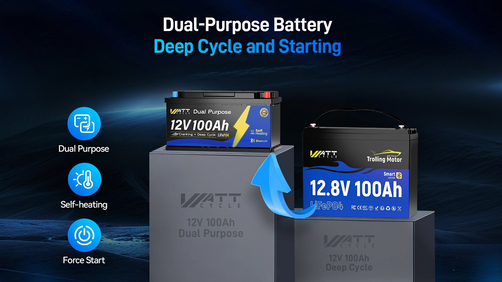 WattCycle 12V 100Ah LiFePO4 Trolling Motor Battery